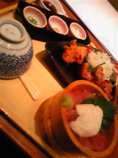 マグロとトトロ…間違えた、トロロのおひつ、から揚げ御前。