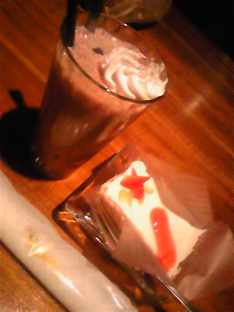 苺ショートとビタミンBジュース。